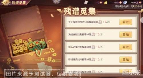 活动期间,小将军可通过活动主界面-【残谱觅见】查看详情,每日参与指定的“日常玩法”,将概率掉落「乐谱残卷」。