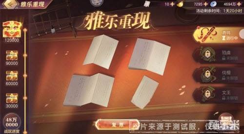 5、为了保障小将军们的活动体验,根据不同平台的游戏人数,【雅乐重现】的战区进度分数会有一定的差异;同时每个战区的曲谱复原制作进度均独立计算,根据复原进程不同,各战区活动的界面表现会稍有不同。
