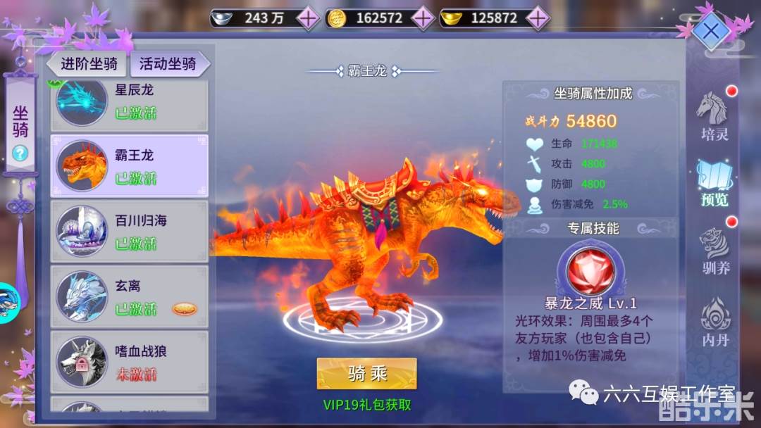 累充10000元:神品坐骑星辰龙(双人坐骑)+15星宠物自选宝箱*1、10级名师随机礼盒*20、御龙界皮肤*1、15星装备直升*3、盛夏时装套装*2