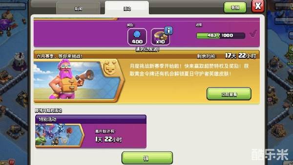 1.最近可能很多玩家都注意到了,部落冲突国服的活动日历中出现了一个即将开始的特别活动的预告,但是很多玩家都还不知道这个特别活动是什么。