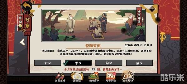 无悔华夏渔樵问答6.15答案是什么?无悔华夏渔樵问答6.15答案选什么?无悔华夏渔樵问答6.15正确的答案是哪个?渔樵问答是无悔华夏的一个经典日常答题活动,在渔樵问答中玩家将面对不同的历史相关的问题,很多玩家都想知道无悔华夏渔樵问答6.15的答案是什么,下面给大家带来无悔华夏渔樵问答6.15答案详解。