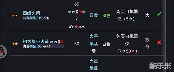 泰拉瑞亚火箭弹一共有几种?泰拉瑞亚火箭弹获取方法是什么?泰拉瑞亚火箭弹获取途径有哪些?火箭弹之泰拉瑞亚中没有办法通过怪物掉落获取,只能通过购买获得的一种弹药,属于是比较特的胡的武器之一,很多玩家都想知道在泰拉瑞亚中火箭弹一共分几种,分别要在哪里购买,下面带来泰拉瑞亚火箭弹种类获取方法一览。
