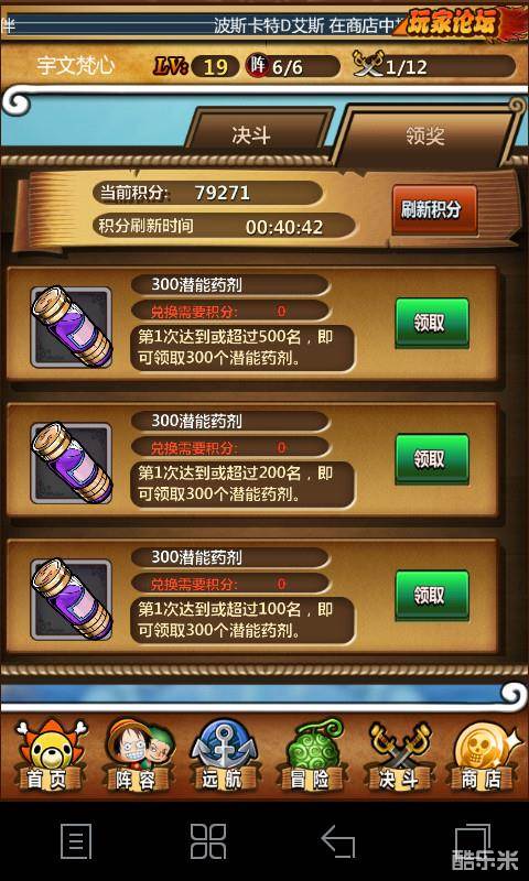 梦想海贼王新服,相信以后会有不少。友友们如果想玩新服,那么第一天很重要,第一天必须拿到1200潜能药剂哦~~~^_^~~~