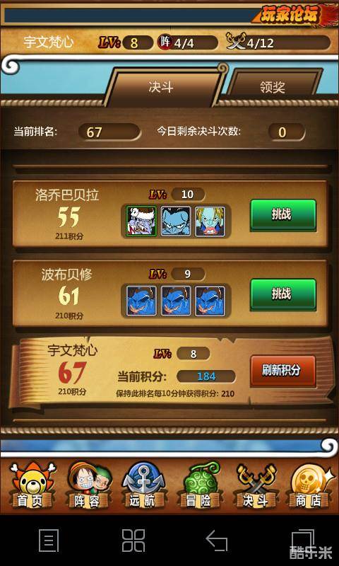 梵心决斗次数用完,只能达到67名o(╯□╰)o