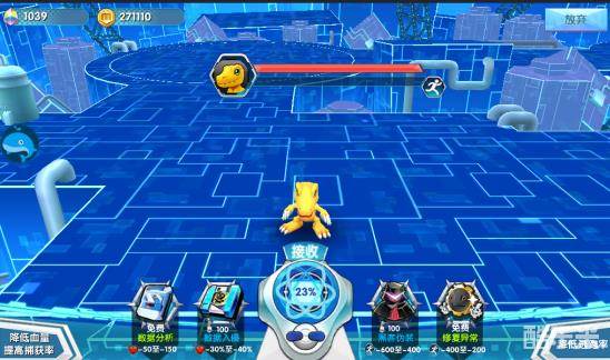 使用数据分析或数据入侵可以消弱宠物的生命值,提高接收率,而黑客伪装和修复异常可以减少数码兽的逃跑率。数码兽生命值越低越容易抓取,但是对数码兽进行攻击降低血量的同时会增加宠物逃跑率,当生命值归0或者逃跑率满的时候宠物都会逃走。