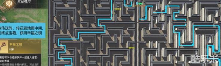 1、终点传送阵,传送到地图中间,开启终点宝箱,获得幸福之钥。具体路线如图所示