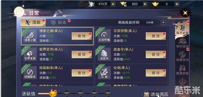 1、主线任务:主线任务一定要跟着走,主线任务的经验值是最多的,而且可以得到重要的资源。