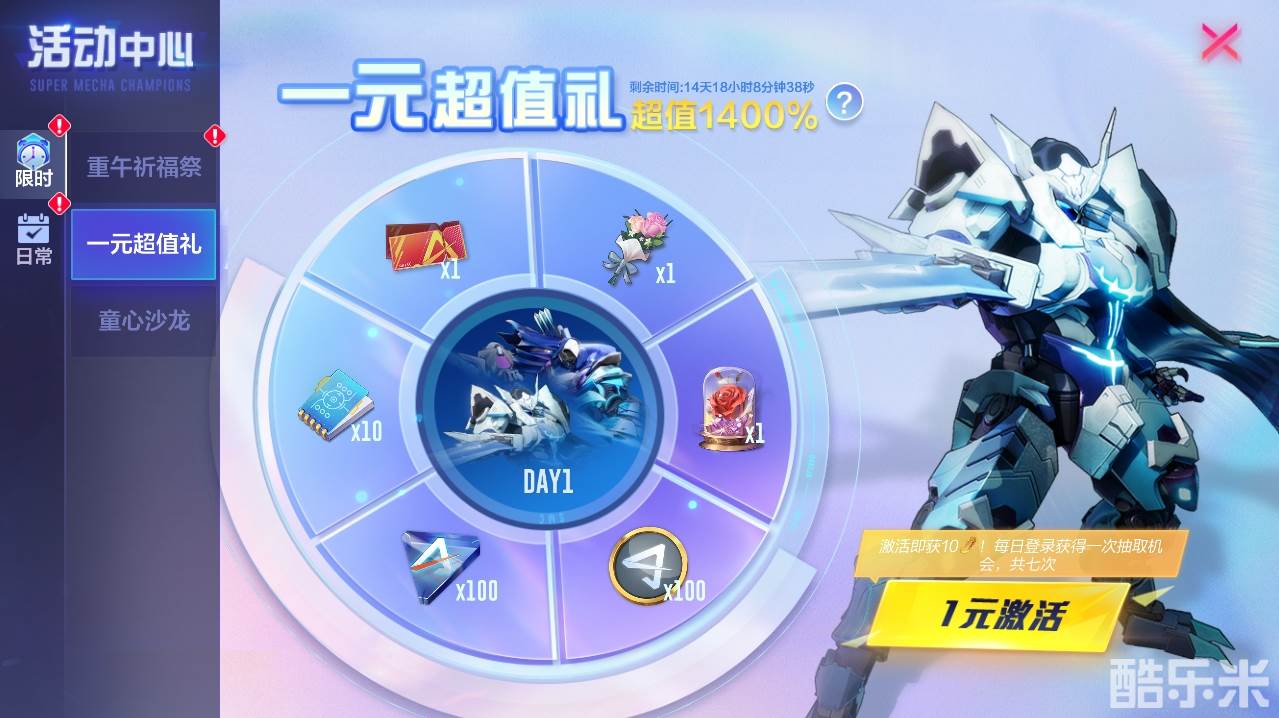 激活立领能量水晶及一次抽取转盘机会!后续登录每日可获得一次抽取机会,共计六次!