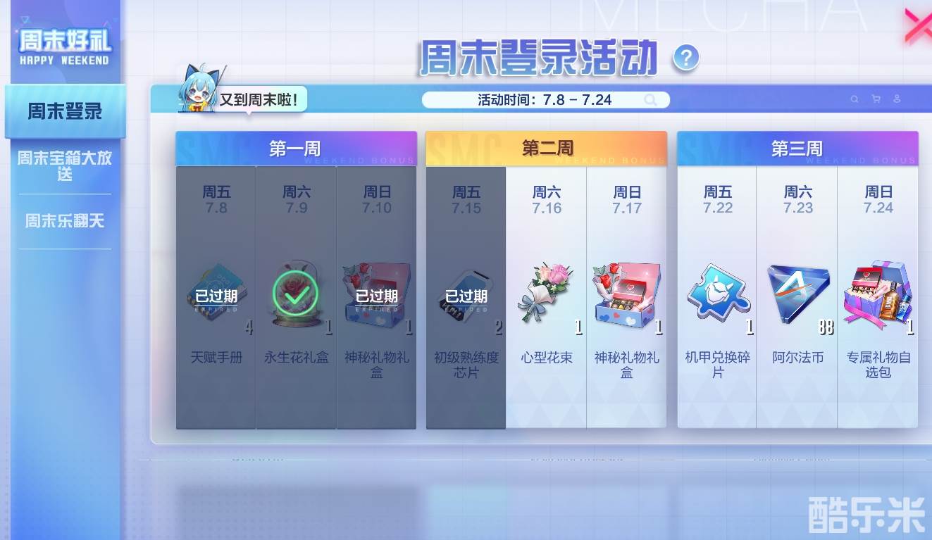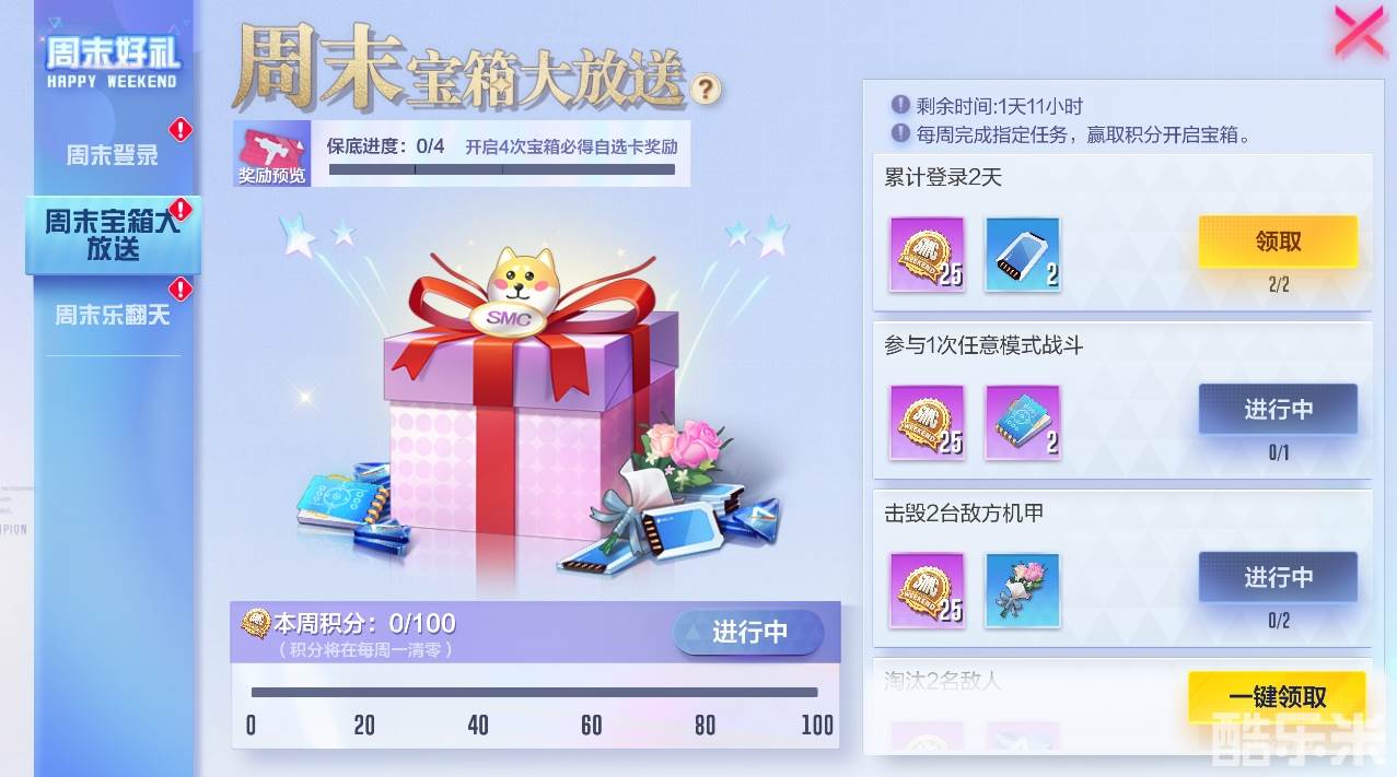 周末期间完成指定任务,即可获得周末训练积分,收集积分开启宝箱,即得A级武器自选卡等好礼。