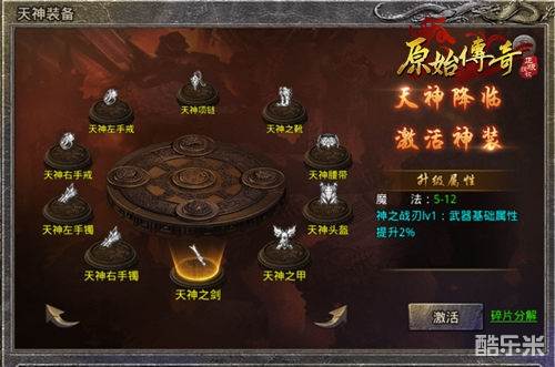 (2)天神装备可通过碎片升级(拆除多余天神装获得)