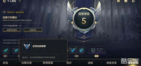 2、信誉等级达到五级之后,连续十场对局没有违规的行为,就可以解锁信誉奖励资格了;