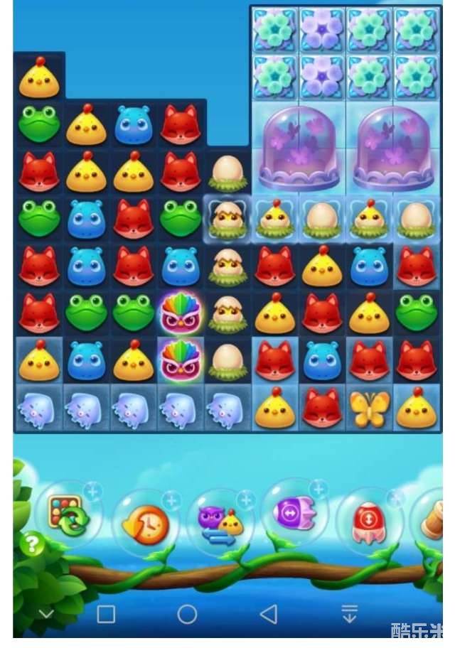 重点在于收完钥匙后的两个豆子和最后两个豆子,开始的豆子用气鼓鱼打开冰就行,很费步数,中间的豆子组竖线特效就能收,最后两个豆子还是用气鼓鱼开道。
