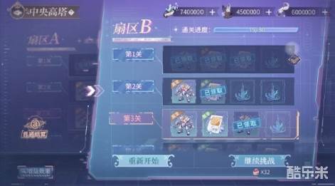 [中央高塔]中存在A、B两个不同的扇区需要挑战,一个编队的画灵只能参与一个扇区的战斗。玩家需准备两组画灵,分别在AB扇区中连续挑战8个关卡。