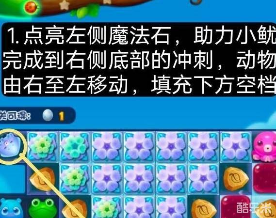 击打魔法石,助力小鱿完成三次冲刺。