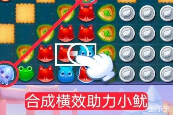 ⒈点亮魔法石,借石助力小鱿完成前两次冲刺,让动物掉落填充左侧空档;