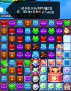 3、星星瓶交换清屏一次消除雪块,同时收集发条可让布谷鸟前进