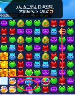 3:贴边三消击打蜂蜜罐,右侧会掉落小飞机,激活小飞机可助力消除蜂蜜罐