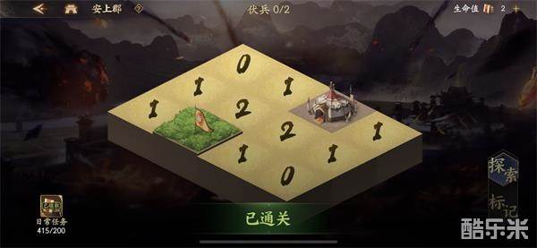 按照上面的图案就可以顺利过关南蛮入侵了,还是非常的简单的,大家只要除数字以外的格子都标记就好了。