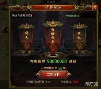 土豪小技巧:建议把主线任务都做完再去炼制,这功能限制30多个小时。早期不要冲上60级开启那么快,等晚上九点再冲上去开启,然后再去跟其他任务,12点前使用完4次机会(没尝试过是不是12点会更新)提升到最高的等级,然后第二天再使用四次机会刷光任务。第二天24小时,加上第一天的9点开始到12点的3个小时,一共27个小时,第三天凌晨12点到3点还有4次机会使用~(这样刷的前提是12点会更新次数)