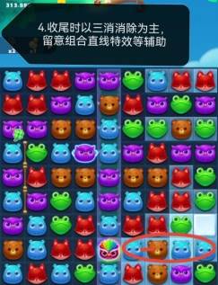 4、结束时以三消为主,同时注意结合直线和爆炸特效进行辅助消除。
