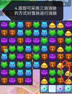 3、三消搜集发条并突破魔法罐,有贴边消弭雪块时机时优先消,底部雪块可借助小松鼠停止消让布谷鸟畅行