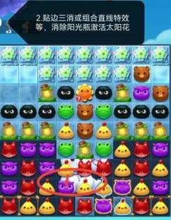 2、三消或结合线性特效等辅助,消除阳光瓶爆裂,激活葵花屏一次。