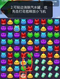 2、右下方可以用来粘边消灭汽水罐,有机会粘边消灭花芽时,优先消灭花芽,放出小飞机帮助消灭。