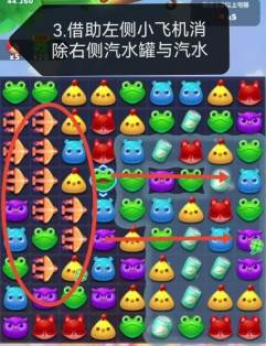 3、激活小飞机,在小平面的帮助下消除右汽水罐和汽水。