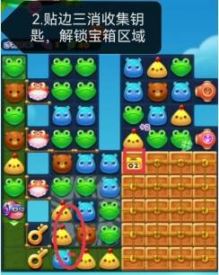 2、贴边三消消除收集键解锁宝箱区。