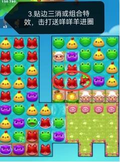 3、贴边三消或组合直线和爆炸特效,打咩羊送羊圈。