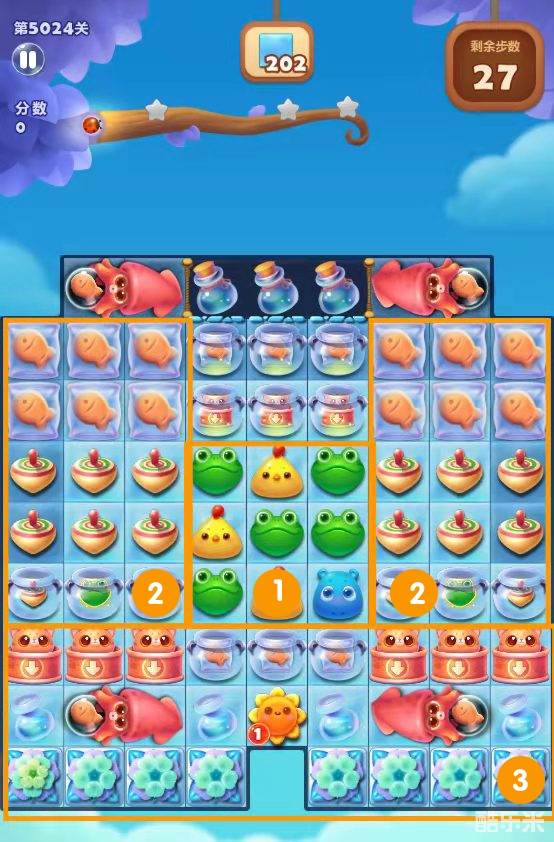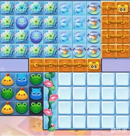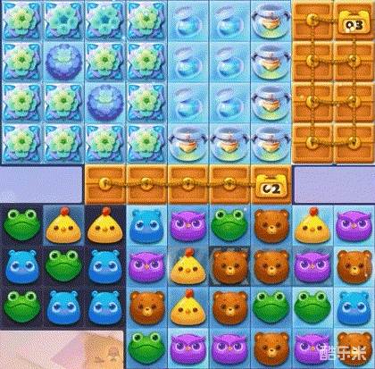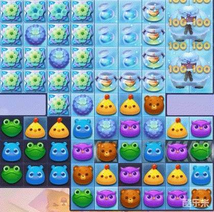 4、第四步:有贴边消除雪块机会时优先贴边三消,同时留意组合直线特效等辅助消除。