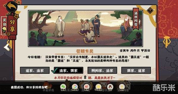 1.今天的问题是:汉宣帝曾有言:“汉家自有制度,本以霸王道杂之”。这里的“霸王道”一般指的是“霸道”和“王道”,与其近似的是哪两种有名的思想?