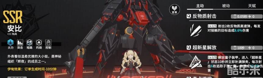 先简单了解下安比的主动技能,有助于我们了解其定位,主动1技能远程攻击,每次2发子弹输出环境较为安全,该技能还有强化形态,一般是作为真空期的补伤害手段。