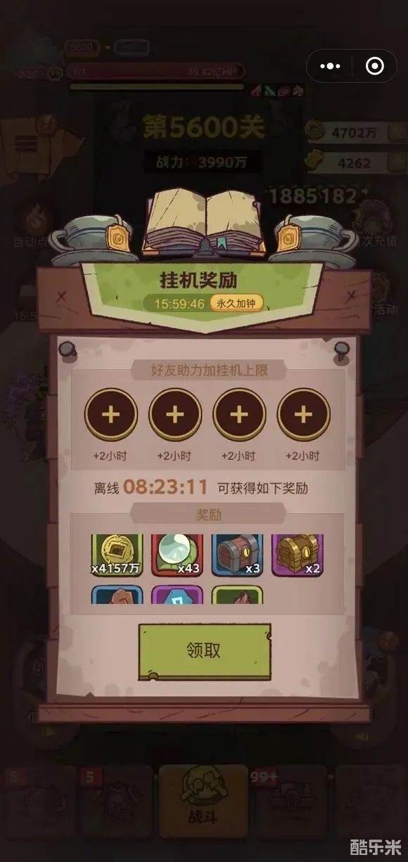 一定要挂满超过八小时才会送箱子,箱子留着不要乱用,集中在宝箱周提升一波,木质宝箱是关卡越高,金币越多,所以能留着就留着,后面开金币更多。