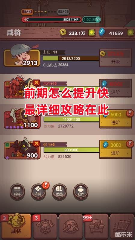 目前版本中无疑吕布就是最强的,前期资源都集中给吕布,例如进阶石、精铁之类的直接给吕布就行了,在资源够用的情况下,其他的人物挂件+5就可以了,主要是为了开所有技能。