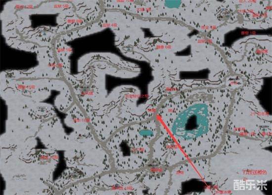 3、在地图中间的位置,位于大雪山树人左边不远处,跟着地图走还是非常好找的。