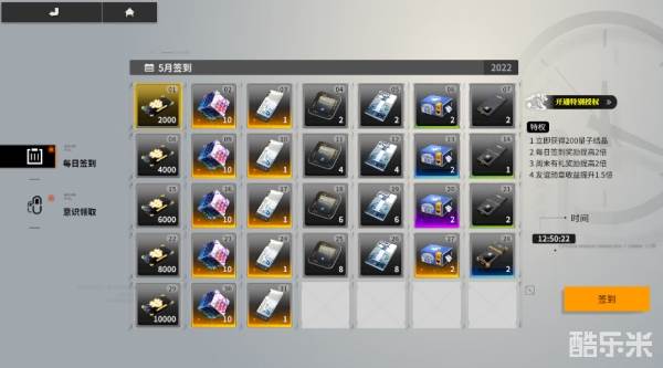 每天登陆指挥塔,首先第一件事情就是领取每日奖励啦!5月只剩下几天这月是无法签到满了,希望官方大大多给点福利补上这个空缺,嘻嘻。
