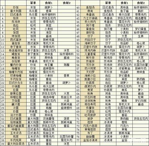 美食梦物语菜谱满属性搭配大全: