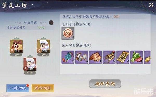 蓬莱工坊也属于一个挂机领收益的地方,能随时间获取一定量的奇兽铸币以及集市摆摊材料(笔者粗略计算,大概能提供每日开店所需量的一半)。