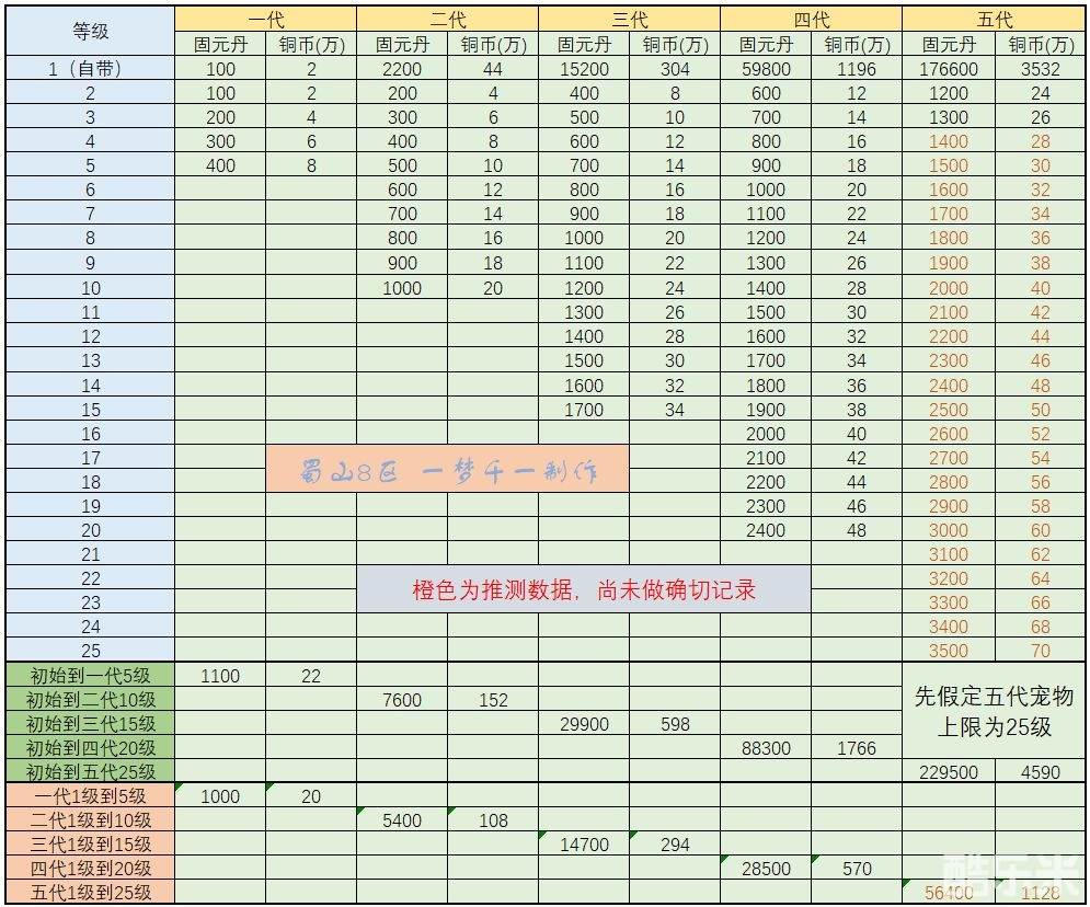 【升级资源消耗表】