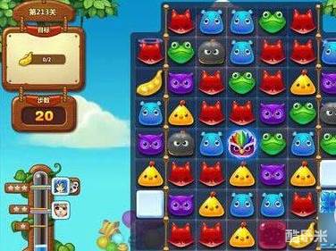 开心消消乐213关2个豆荚掉落数量不多,然而系统给大家的时间也很紧张,玩家要注意的是豆荚的掉落位置是指定的,因此豆荚的位置不要移动啦,另外冰雪障碍一定要消除掉,不然就很难掉下去,毒液若是将入口堵住了也要消除,毒液肯定是要出来的只要它 不泛滥玩家无需过关的担心。