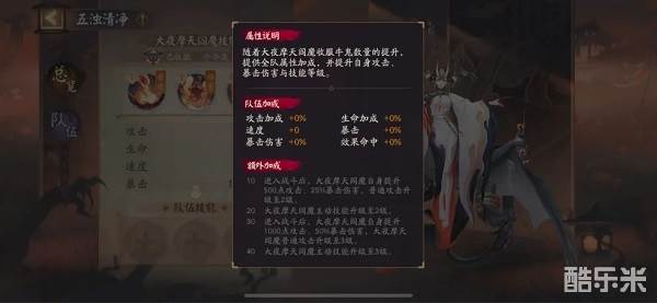 2、升级个人buff会提高自身式神和SP大夜摩天阎魔的属性,以及SP大夜摩天阎魔的技能等级,升级团队buff会给出场队伍提供各种团队技能加成,有增加阎魔老师输出的、有增加多段伤害输出的、有增加单段伤害输出的,根据阵容需要搭配。