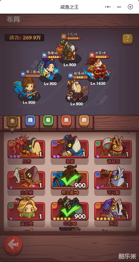 可以调整为第二套强力输出:吕布、司马懿、诸葛亮、太史慈、蔡文姬(治疗)。