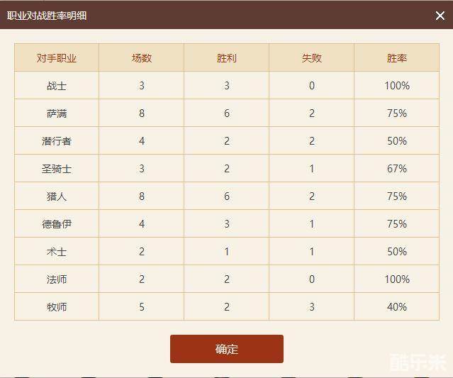 牧师遇到的5把牧师都是宇宙牧,属于劣势对局,是39场战斗里唯一胜率低于50%的对战职业。主要是由于我们启动较贼、萨、猎慢2-3回合,前期给牧师压力不够,牧师可以轻松过牌,等我们刚要启动的时候,宇宙牧的解牌很可能已经过到手了。我们的赢点主要就是前期经过BUFF的4攻随从可以蹭到比较多的血,给牧师较大压力;6费龙息不到或是被我们的针对牌卡了节奏,导致场面失控,我们的随从在6-8回合把身材和攻击BUFF起来,如果DK不到位的话基本就赢了。