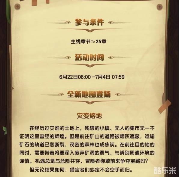 1、新奇境漫游雪与火将于北京时间 2022/06/18 08:00开启。