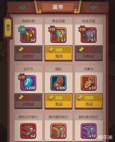 每天除了青铜宝箱、铂金宝箱、进阶石是必买的,其它所有东西折扣低再买,当然如果金砖多的话可以去买鱼竿去做月度任务,其它没什么需要花金砖的地方,把金砖留着买江湖黑市的东西。