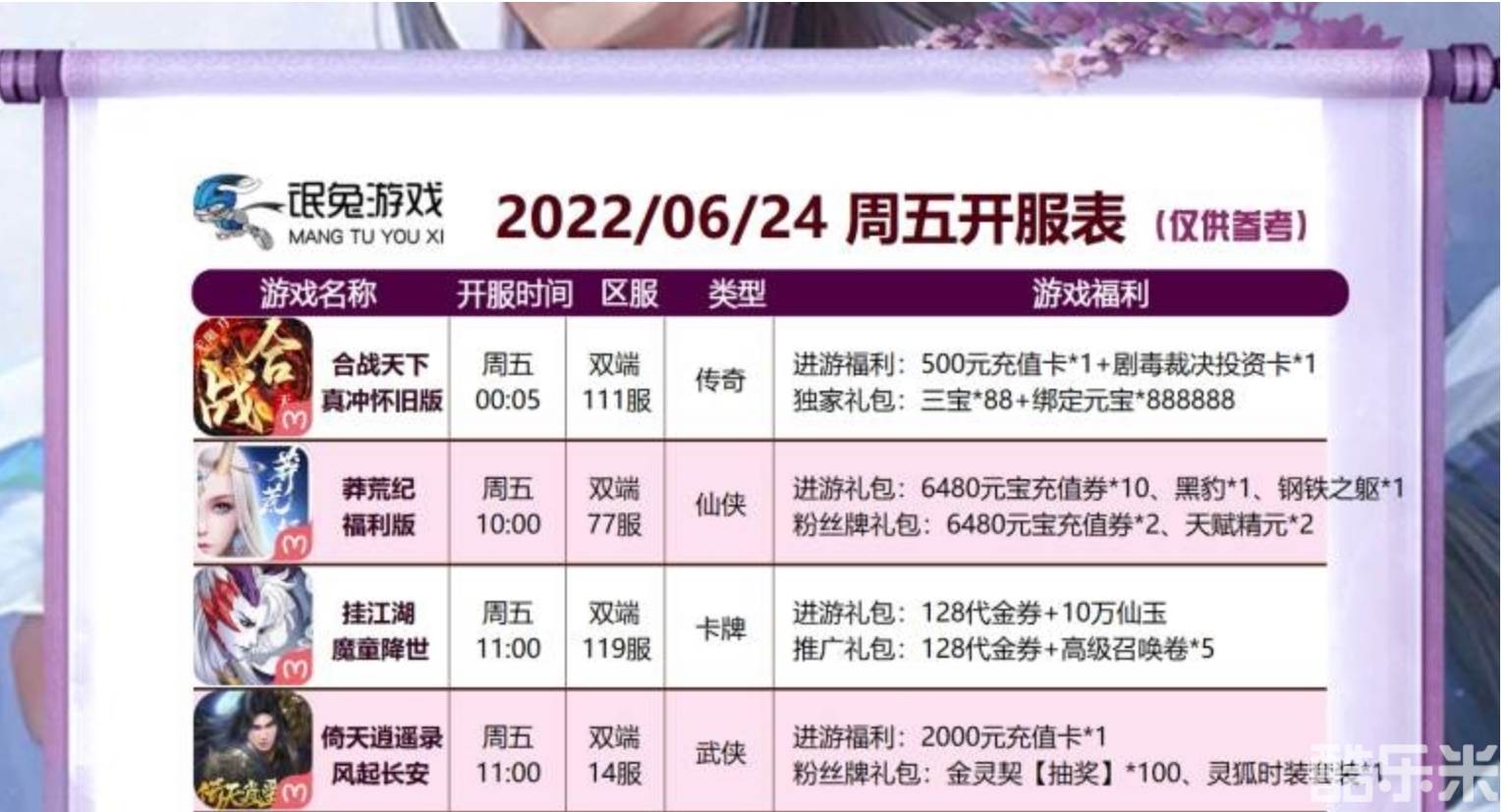 | 莽荒纪-福利版 | 双端77区( 苹果- 安卓) | 2022-06-24 10:00:00 |