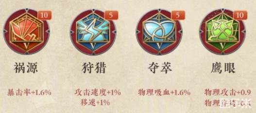狩猎(攻击速度+1% 移速+1%)提供攻速和移速,戈娅属于平A流英雄,更依赖平A的伤害,因此叠加部分攻速是必要的。