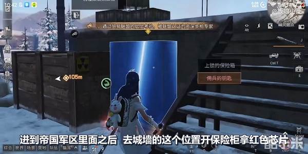 3、第三步:拿到钥匙之后把路上佣兵及工厂内部的一些佣兵清理完之后分头行动去地图上的这两个位置,一个围墙上的柜子,另外一个帐篷里面的柜子,一人开一个,围墙的是红卡,帐篷是蓝卡。