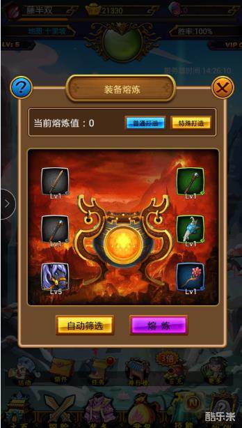 五:熔炼装备的结果只有两种。①:没有出装备,只会贡献相应的熔炼值;②:熔炼出装备,此时不会给熔炼值。六:若熔炼出新装备,新装备品级为原装备加一,装备品级从低到高为白,绿,蓝,紫,橙,